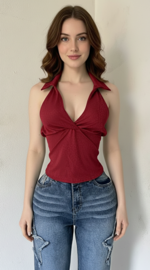POLO CROP CEREZA(material algodon jersey)